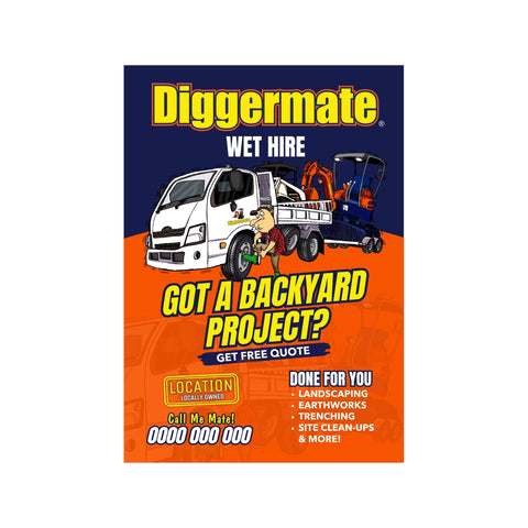 Grab attention and drive local bookings with our Diggermate A5 flyers! Designed for maximum impact, these one-sided flyers are perfect for promoting Diggermate services directly to your community.